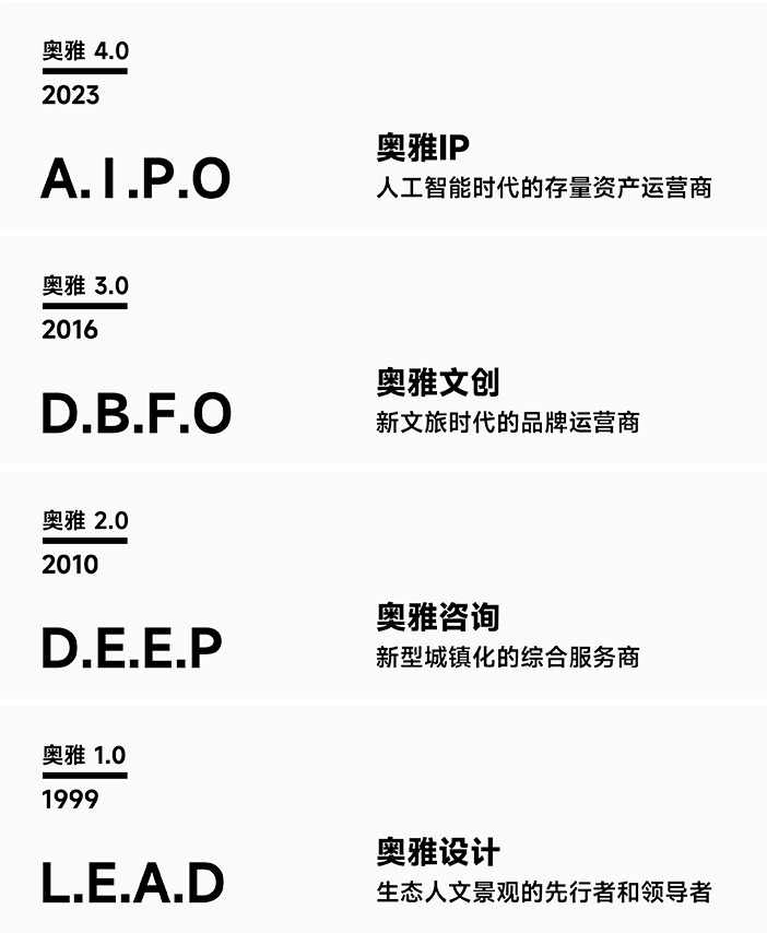 經(jīng)過(guò)多年的戰(zhàn)略布局與發(fā)展,在李方悅女士的推動(dòng)下,奧雅股份從一家設(shè)計(jì)企業(yè)成功轉(zhuǎn)型成為新銳的輕資產(chǎn)文旅開(kāi)發(fā)運(yùn)營(yíng)企業(yè)。奧雅以“創(chuàng)造更美好的人居環(huán)境”“讓空間賦予生命”為使命,以雙輪驅(qū)動(dòng)+雙引擎為發(fā)展格局,即創(chuàng)意設(shè)計(jì)+親子文旅雙輪驅(qū)動(dòng)、AIGC+IP雙引擎;經(jīng)營(yíng)業(yè)務(wù)范圍涵蓋創(chuàng)意設(shè)計(jì)、親子文旅、數(shù)字科技等領(lǐng)域,為城市更新、鄉(xiāng)村振興、文化古城等不同場(chǎng)景提供全程化咨詢與綜合運(yùn)營(yíng)服務(wù)。在實(shí)現(xiàn)企業(yè)價(jià)值和理想的同時(shí),解決當(dāng)代中國(guó)的實(shí)際問(wèn)題與需求,創(chuàng)造具有地域特色、人性化和充滿活力的新舊城市空間和綜合文化旅游項(xiàng)目。